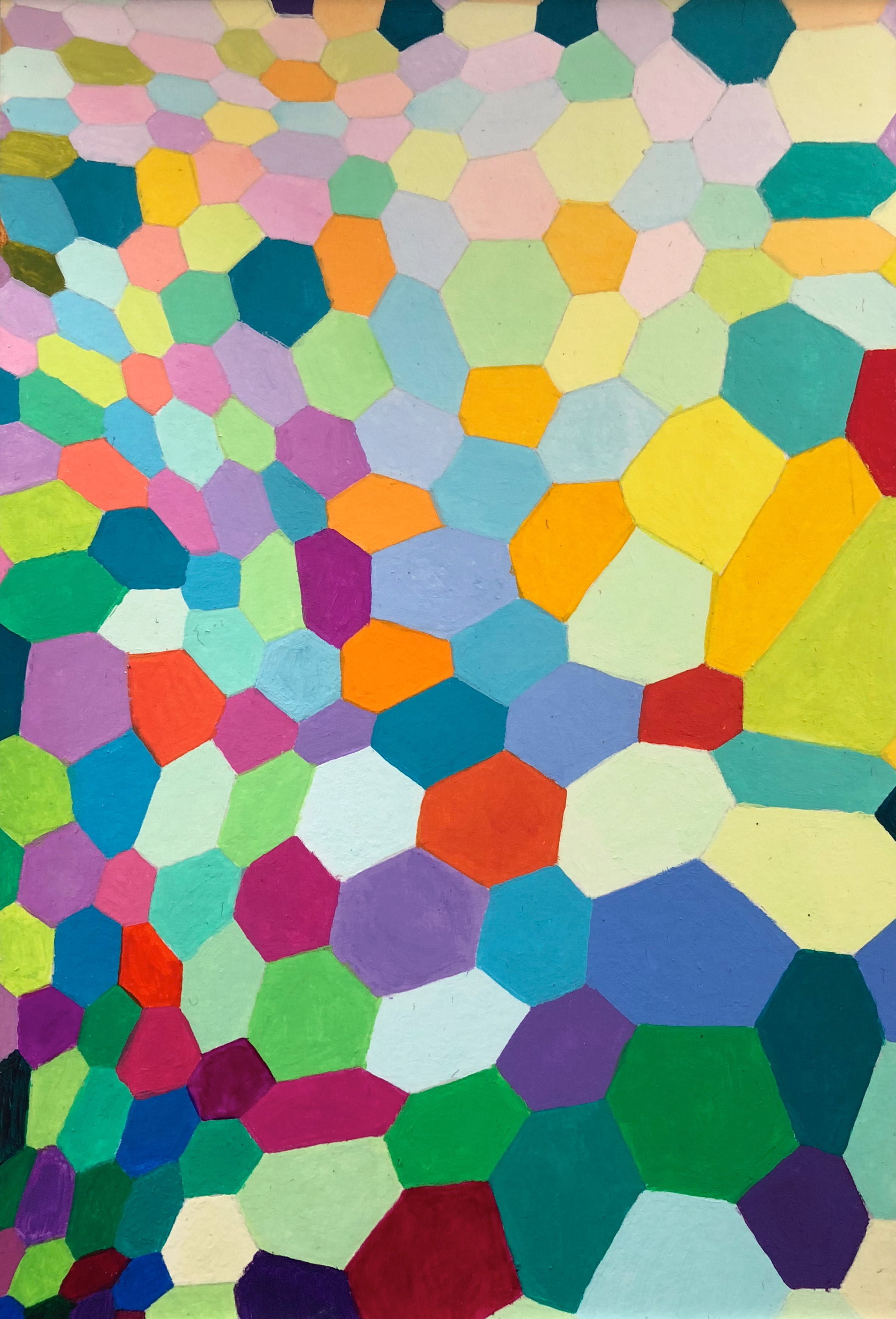 Easier said than done. I’m not a realist, so I employ more abstracted forms and try different approaches in my attempts to achieve said dance. Limiting myself in terms of shape and pattern types—a maximal minimalism if you will—helps to tie a piece together to keep it from becoming a mishmash of psychedelic soup.